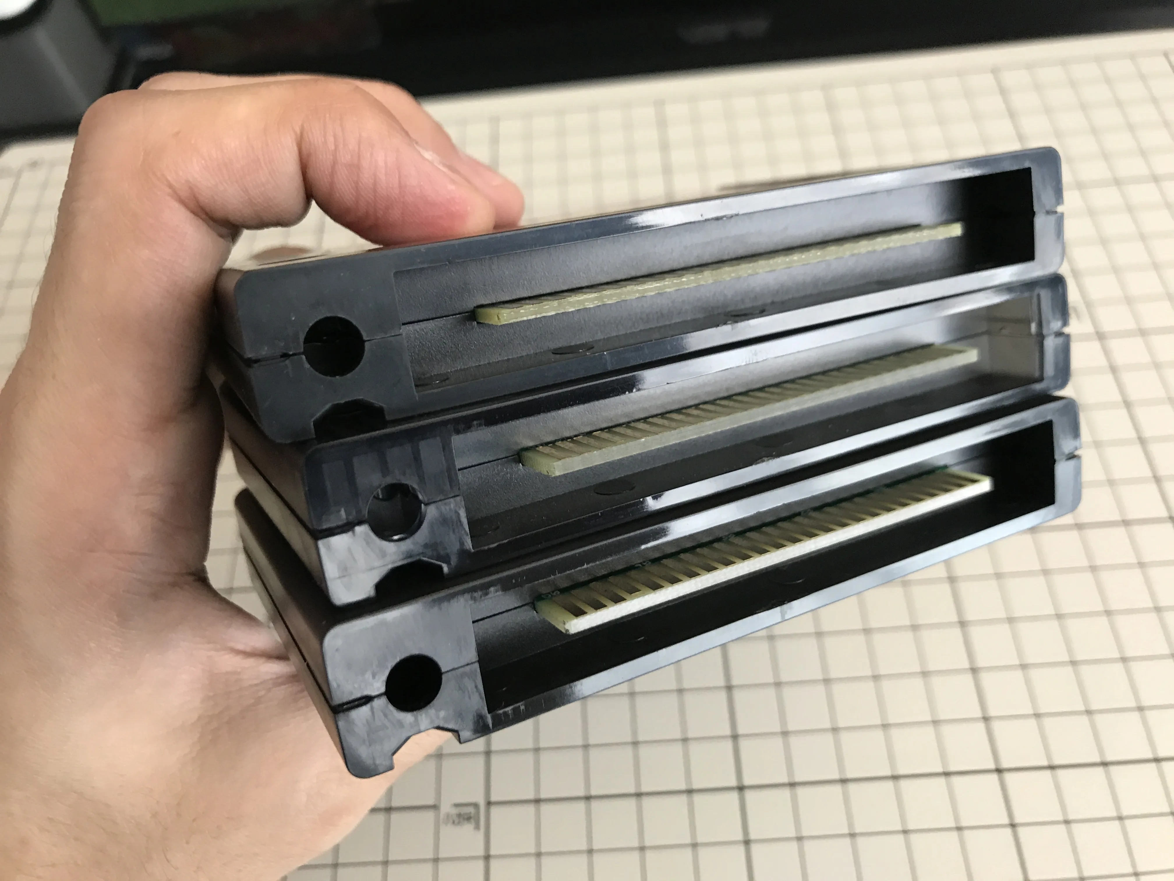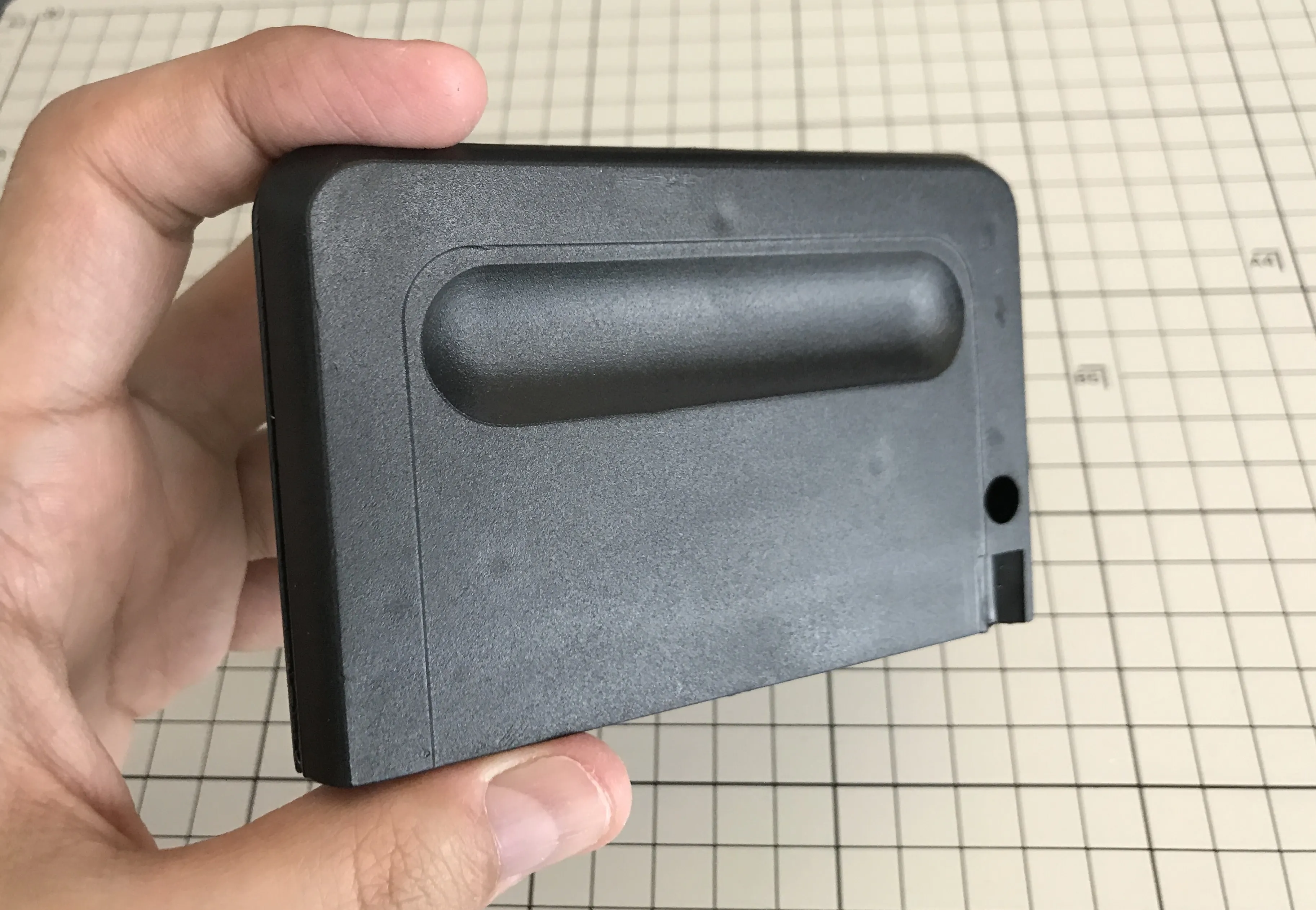 Manuel makes his own cartridge cases using a plastic injection moulding machine. His cartridge cases don't use any screws: the two halves snap together and it's difficult to open the case once it's been closed.