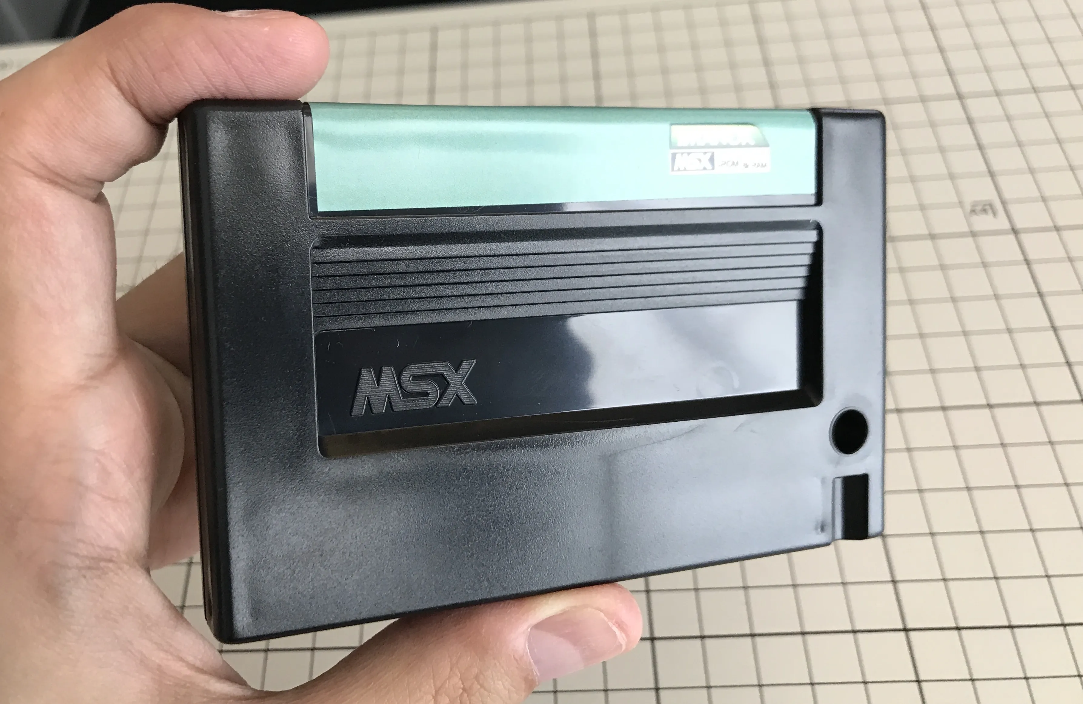 Matra also produce their own cartridge cases. Like MSX Cartridge Shop, they also use an injection moulding machine. These cartridge cases are screwless and snap together when closed. The design is rounder than most other cases we're used to see in MSX productions, and have a large depression on the back that made them easier to grab and pull from the cartridge slot.