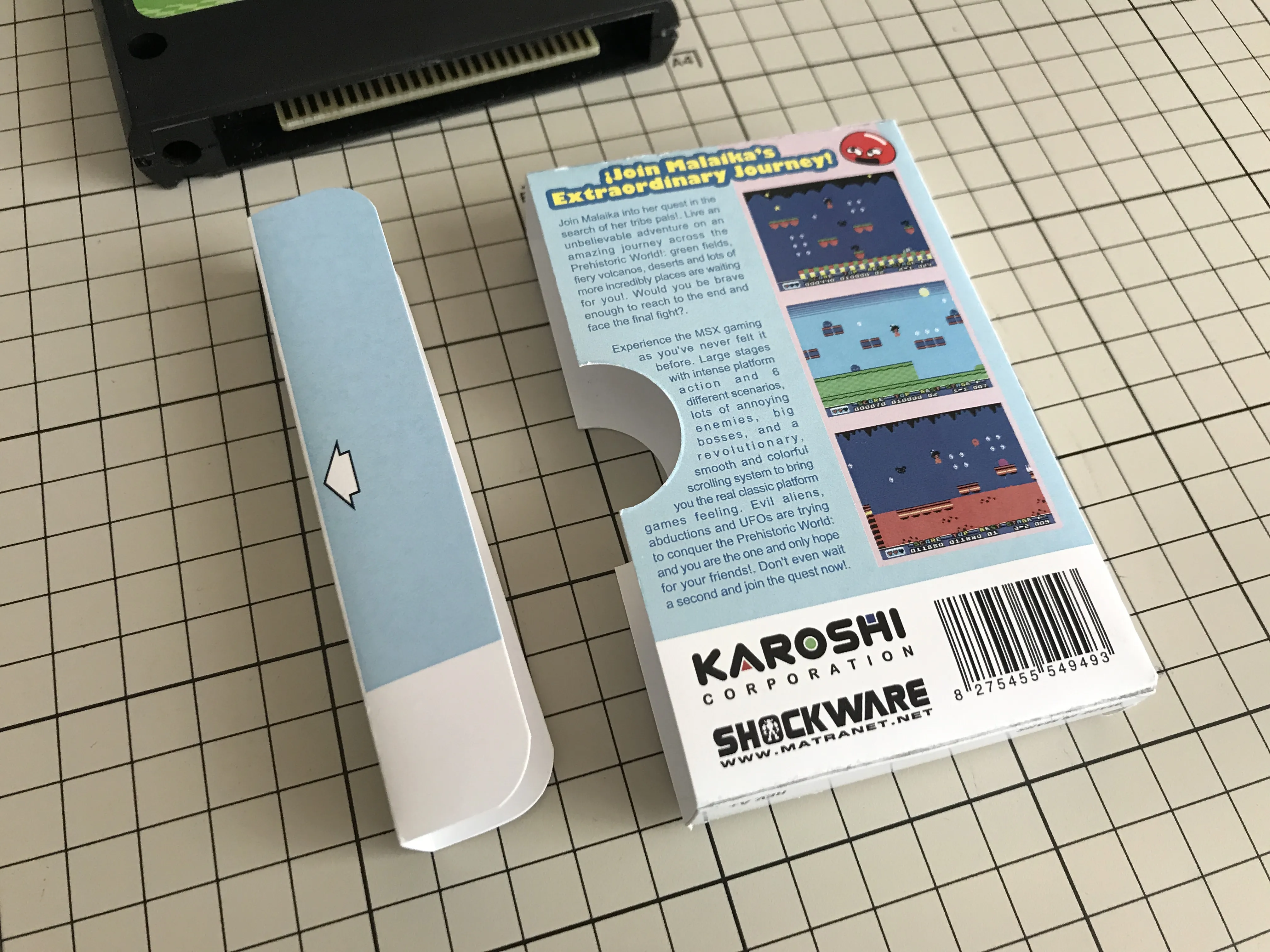 - A cardboard case similar in size and design (but not the same) as MSX Cartridge Shop's