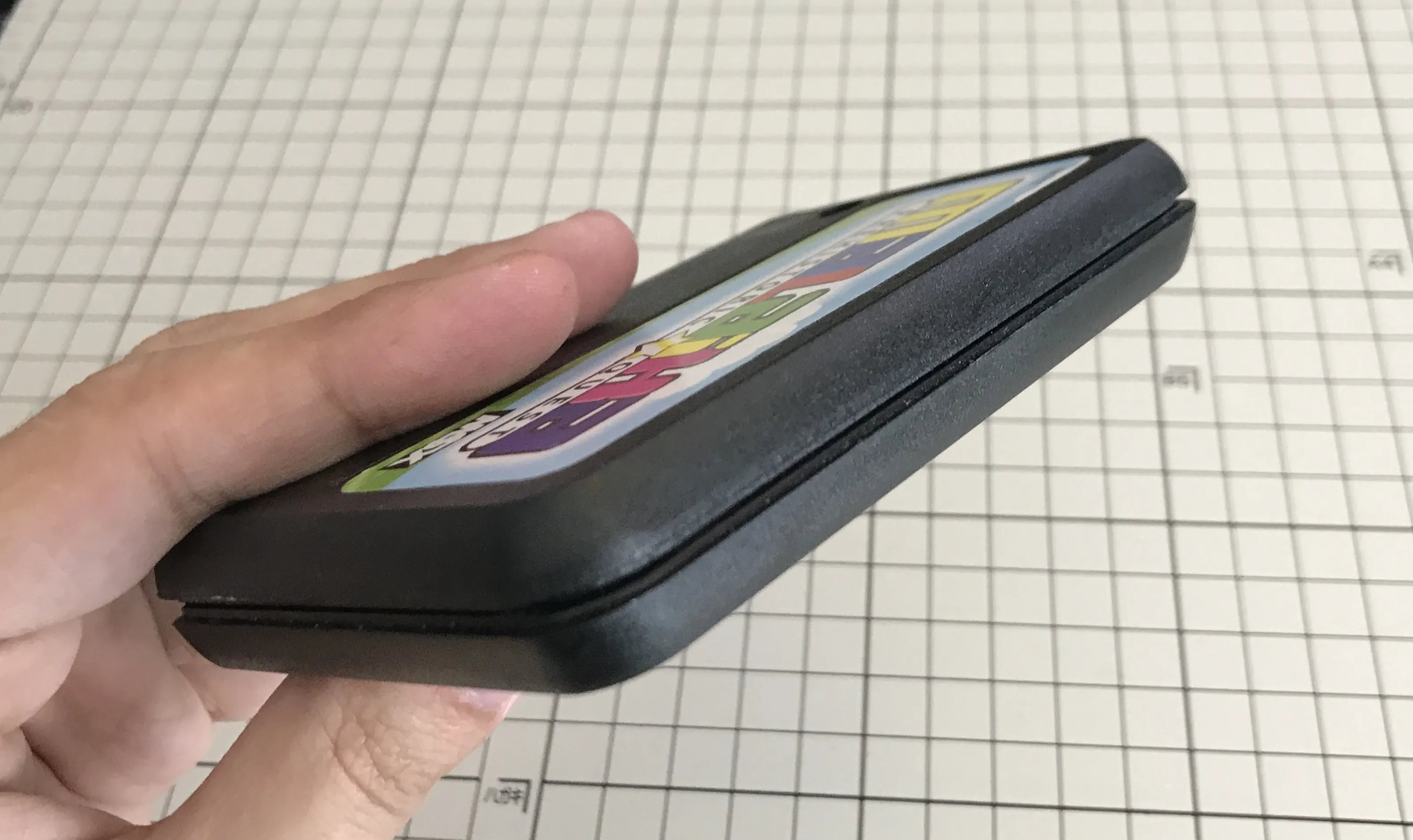 Another difference is that this case doesn't support the left and right sides of the cartridge. The cardboard flaps only hold the top and bottom of the case, so the game tends to slide up and down when the box is stored vertically. This doesn't suppose a problem at all because it's still very easy to remove the cartridge from the box.