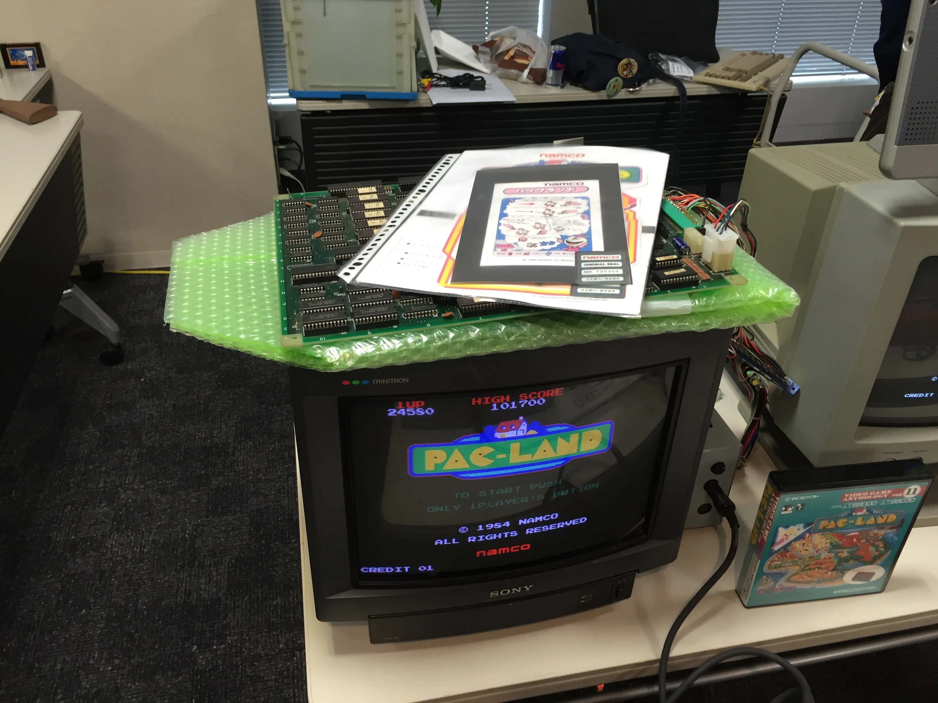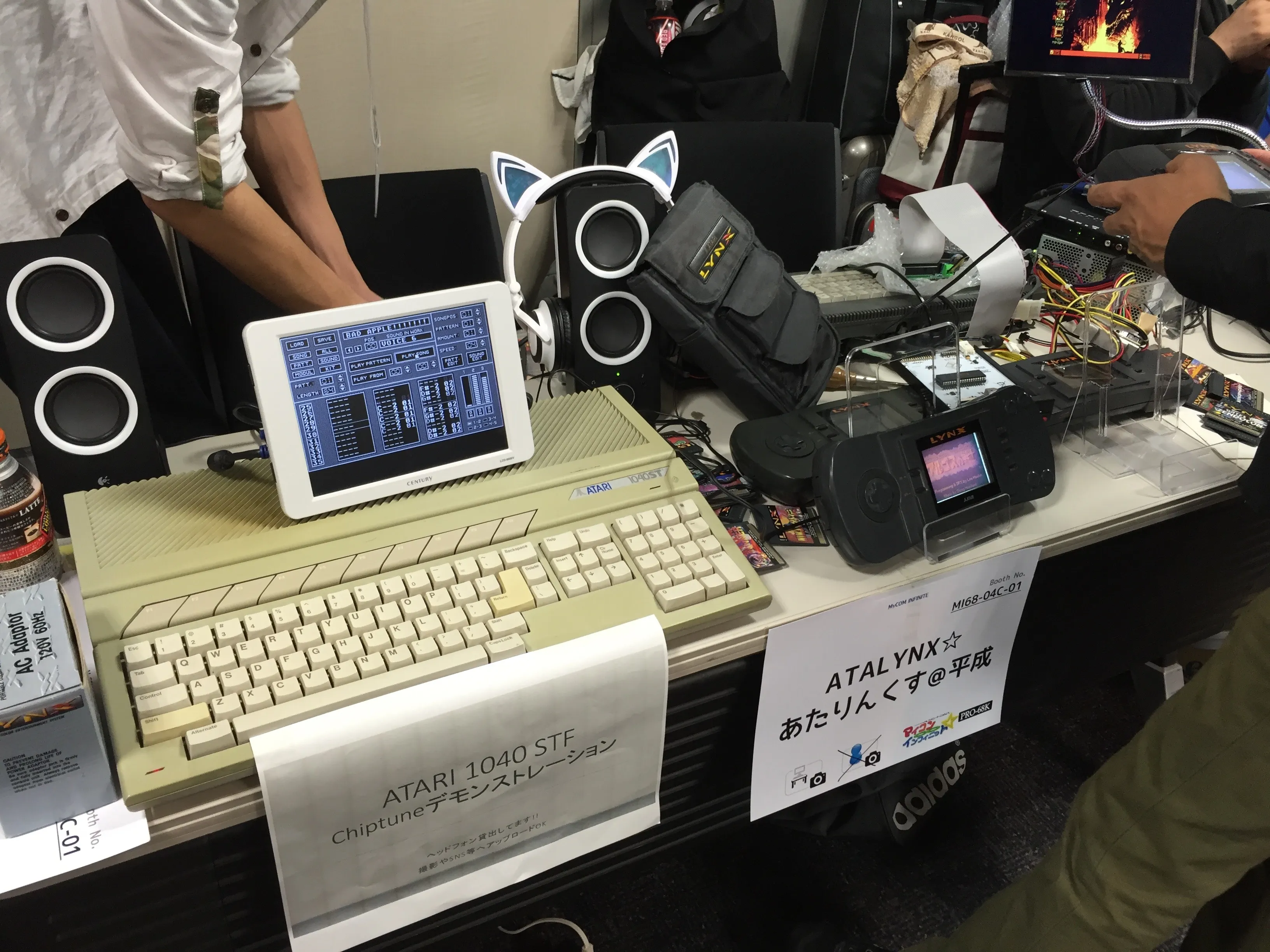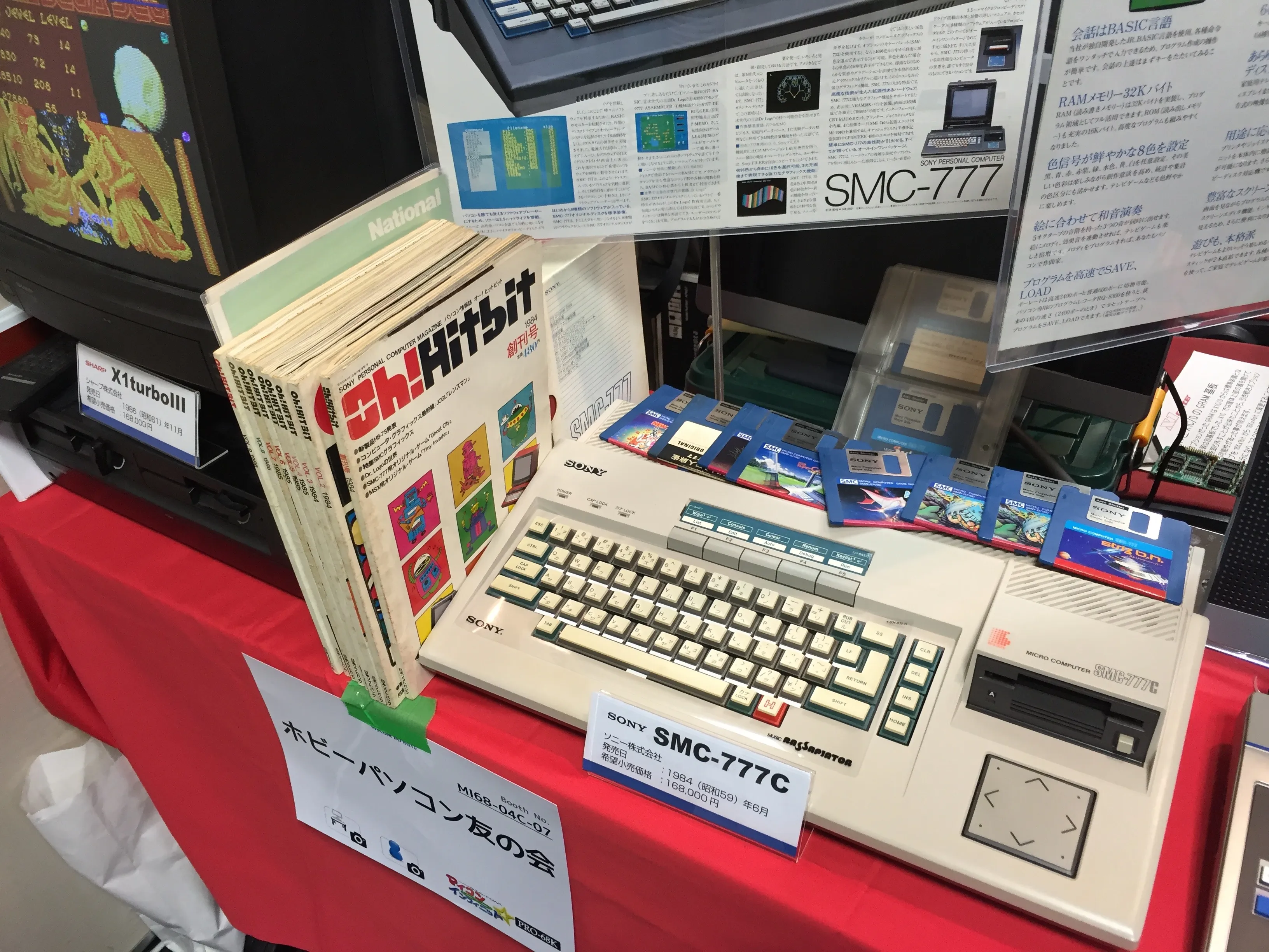 I didn’t have much time to spend, so I took a few more photos before leaving. The remaining stands had had other interesting things such as a Sony Hit-Bit SMC-777C computer, a very cool-looking Sharp X1turboIII and a National (Panasonic) JR-200. @ORION80 had in his stand a Commodore Amiga 500 (common in Europe, but not so much in Japan) also playing Pac-Land, and there was an Atari 1040ST as well in another stand near the entrance. Unfortunately I couldn’t stay longer.