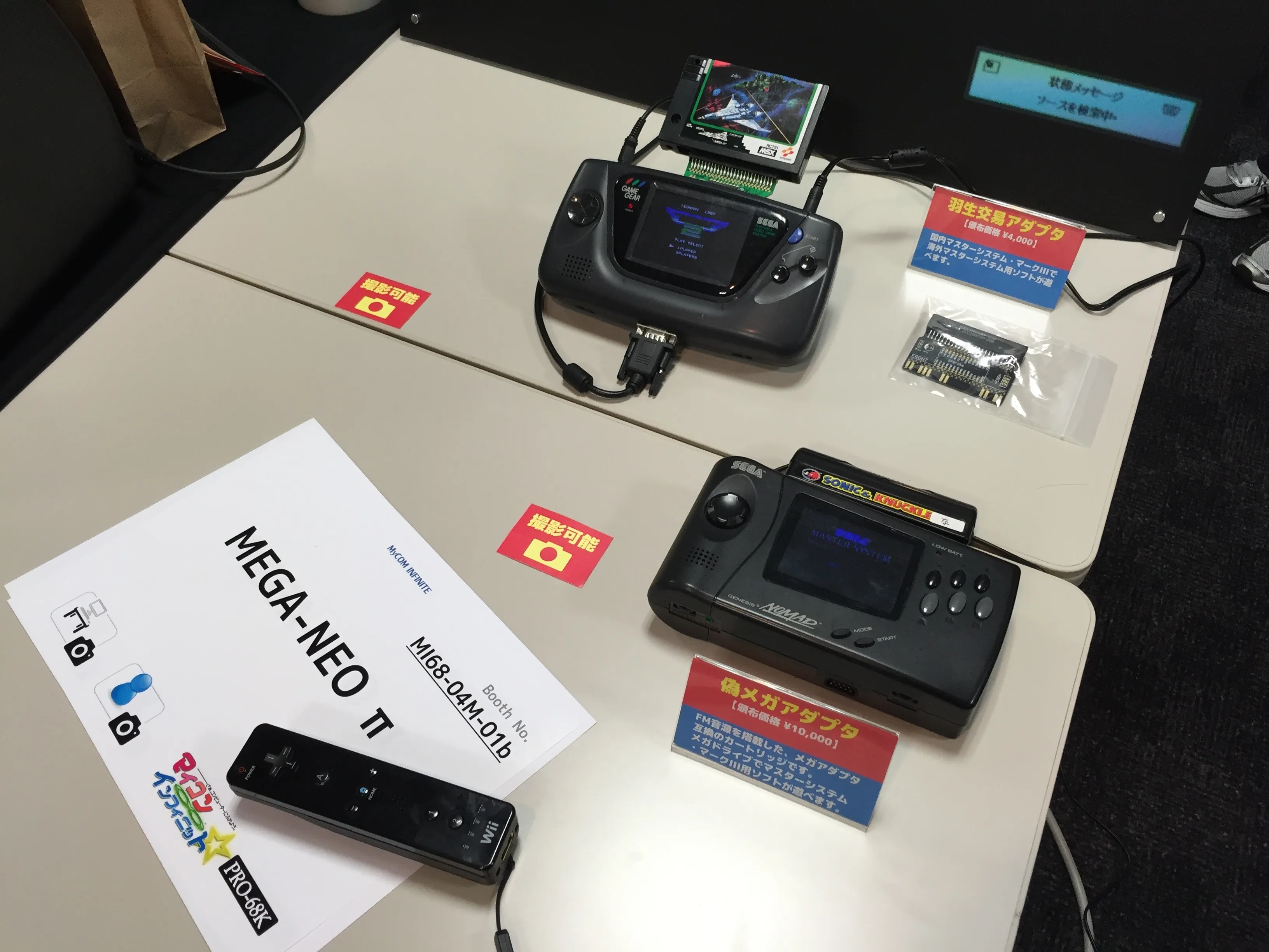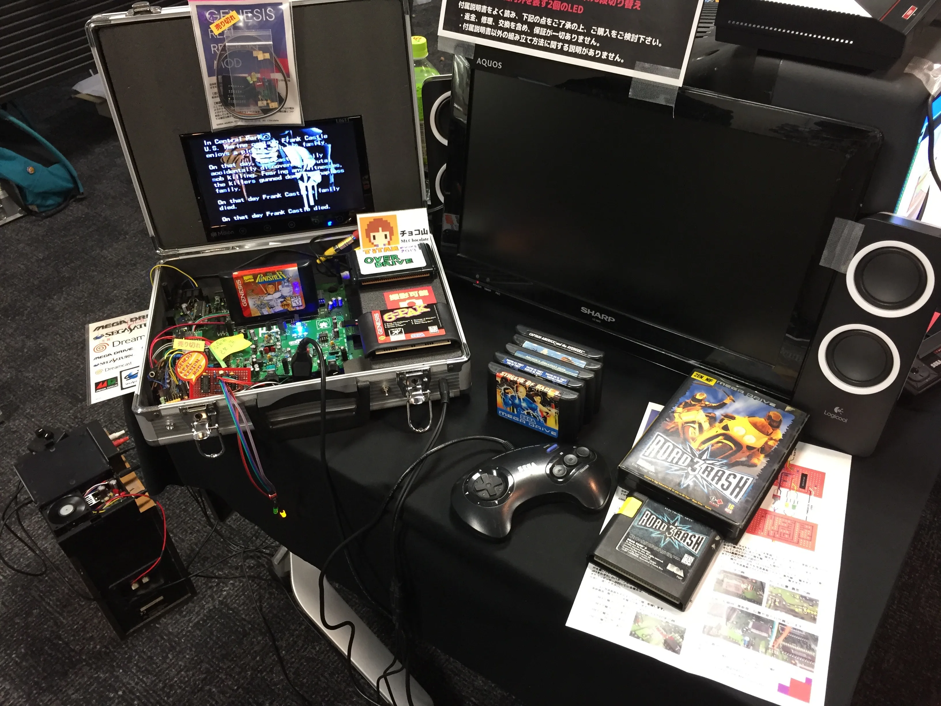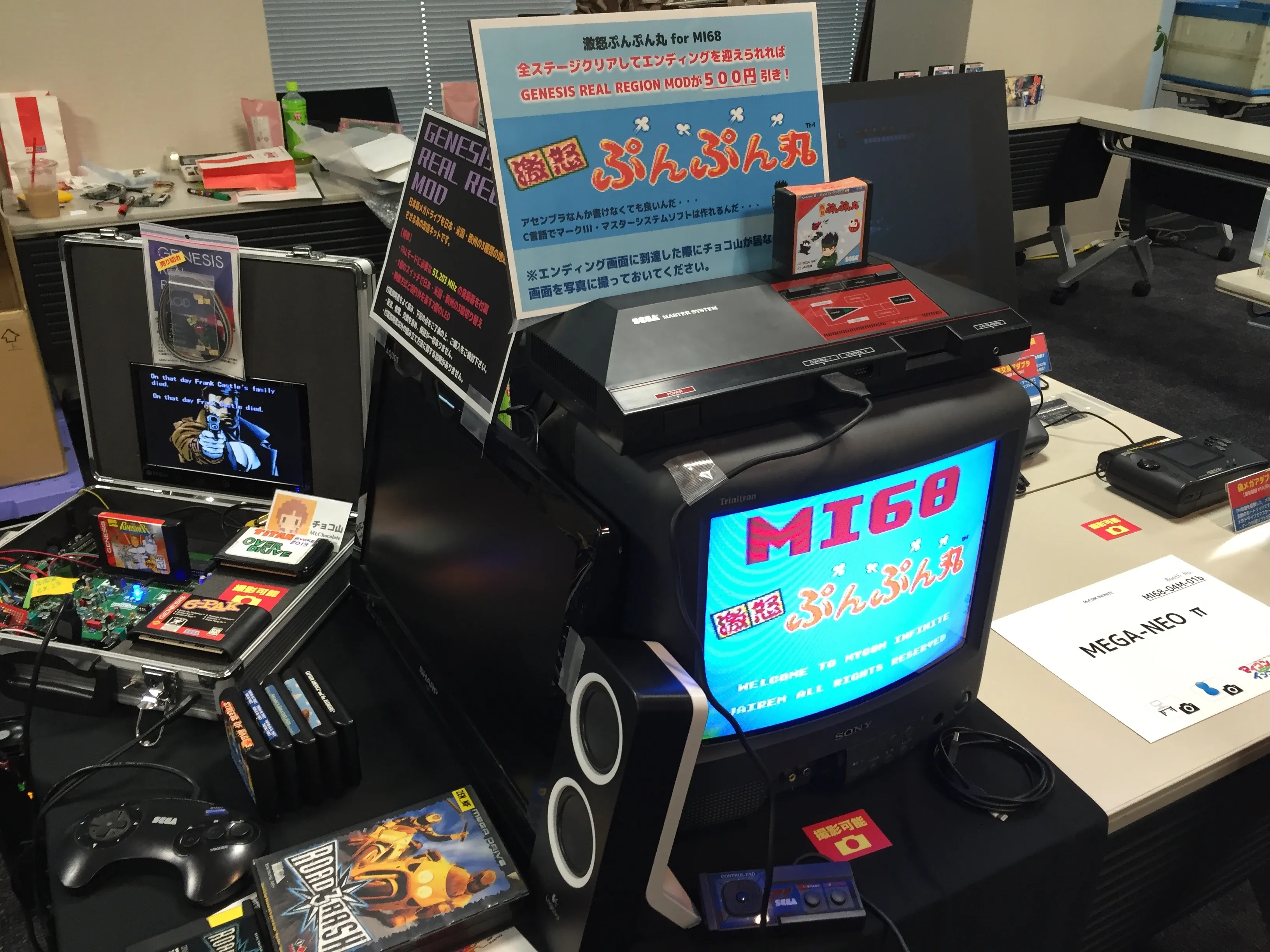 Sharing desk with MEGA-NEO ∏ was Mt.Chocolate showcasing and selling mods for the Sega Genesis and a cartridge game he developed for the Sega Master System.