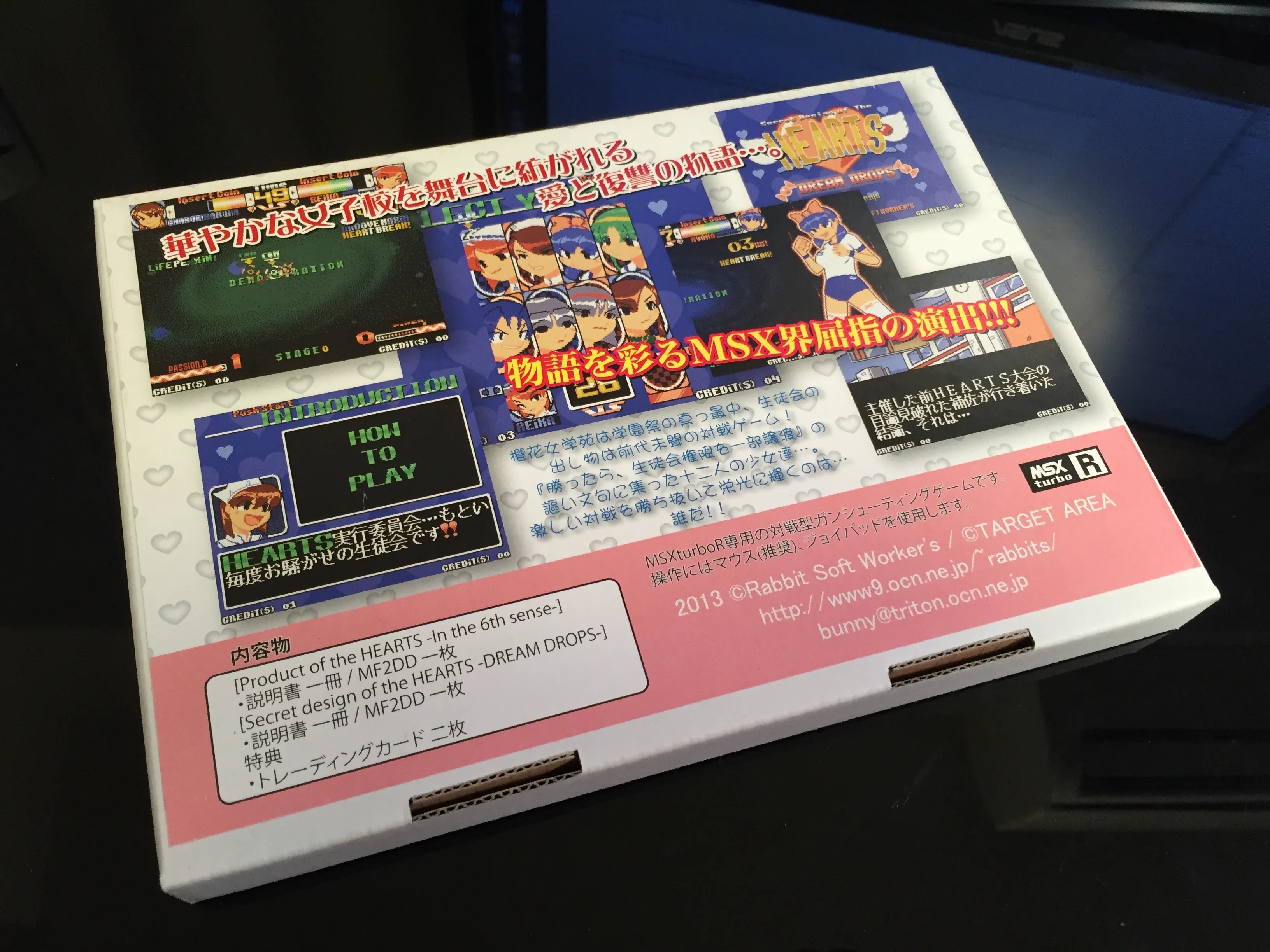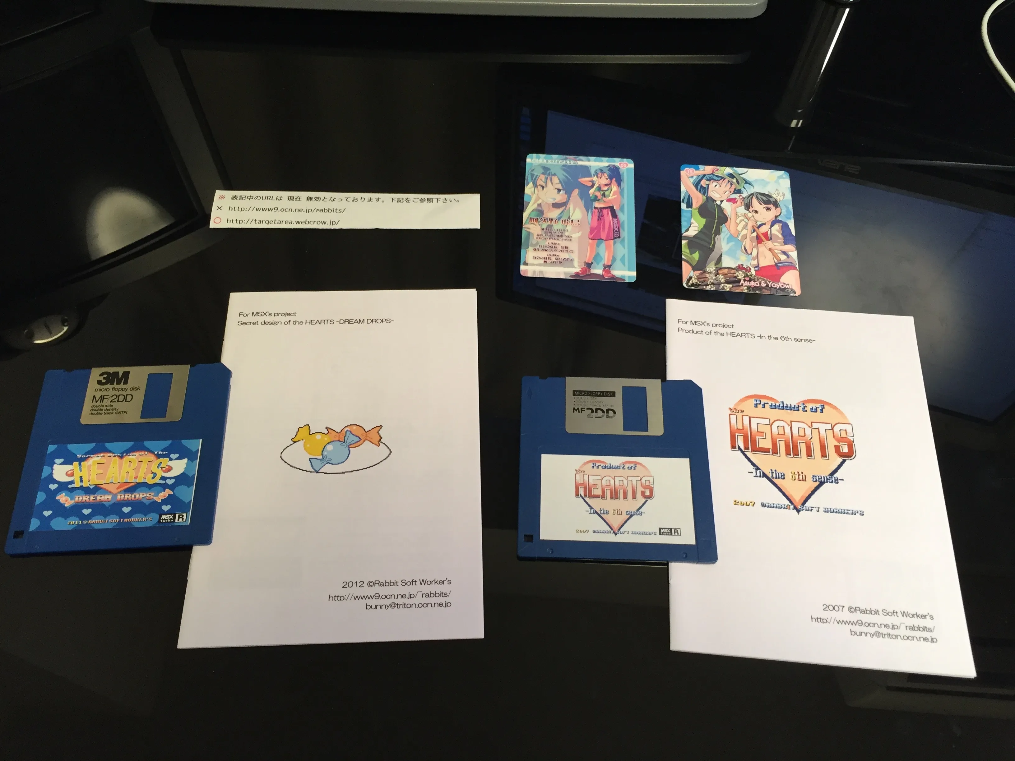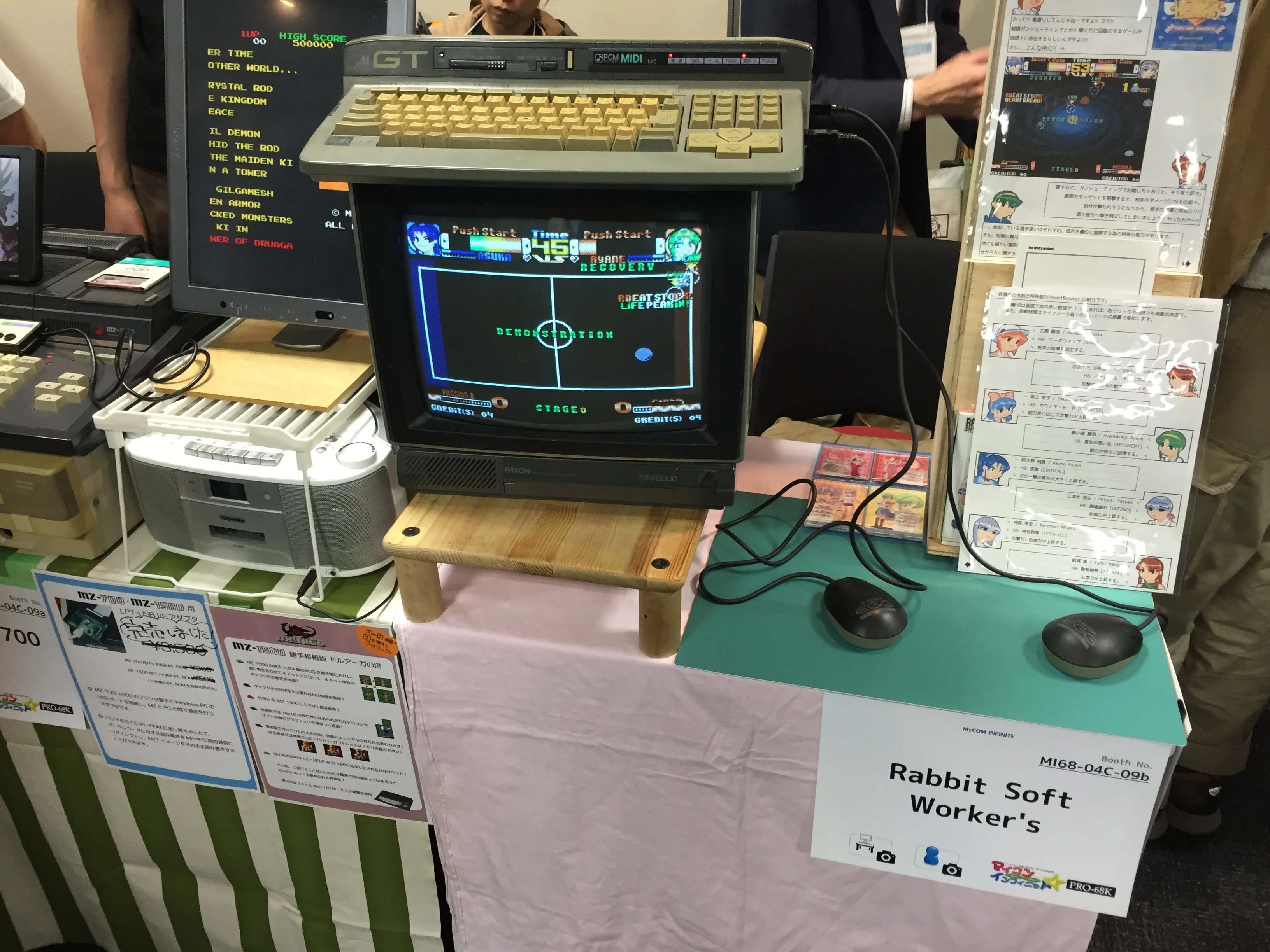 Next I went to see Rabbit Soft Worker’s stand (@in_the_bunny on Twitter). They had a Panasonic FS-A1GT connected to a display and were showcasing their games for MSX turbo R: Secret Design of the HEARTS -DREAM DROPS- and Product of the HEARTS -In the 6th sense-. They sold both games in a single package with very nice illustrations and very high quality manuals. I bought the games and also a standalone feature book.