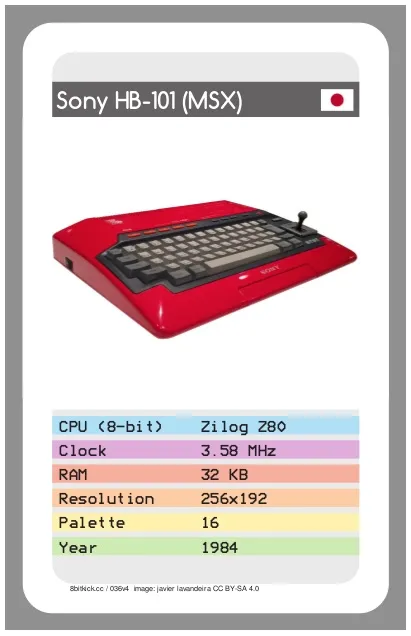 Oh, I forgot to mention: one of the cards features the Ferrari of 8-bit computers: a red Sony HB-101: