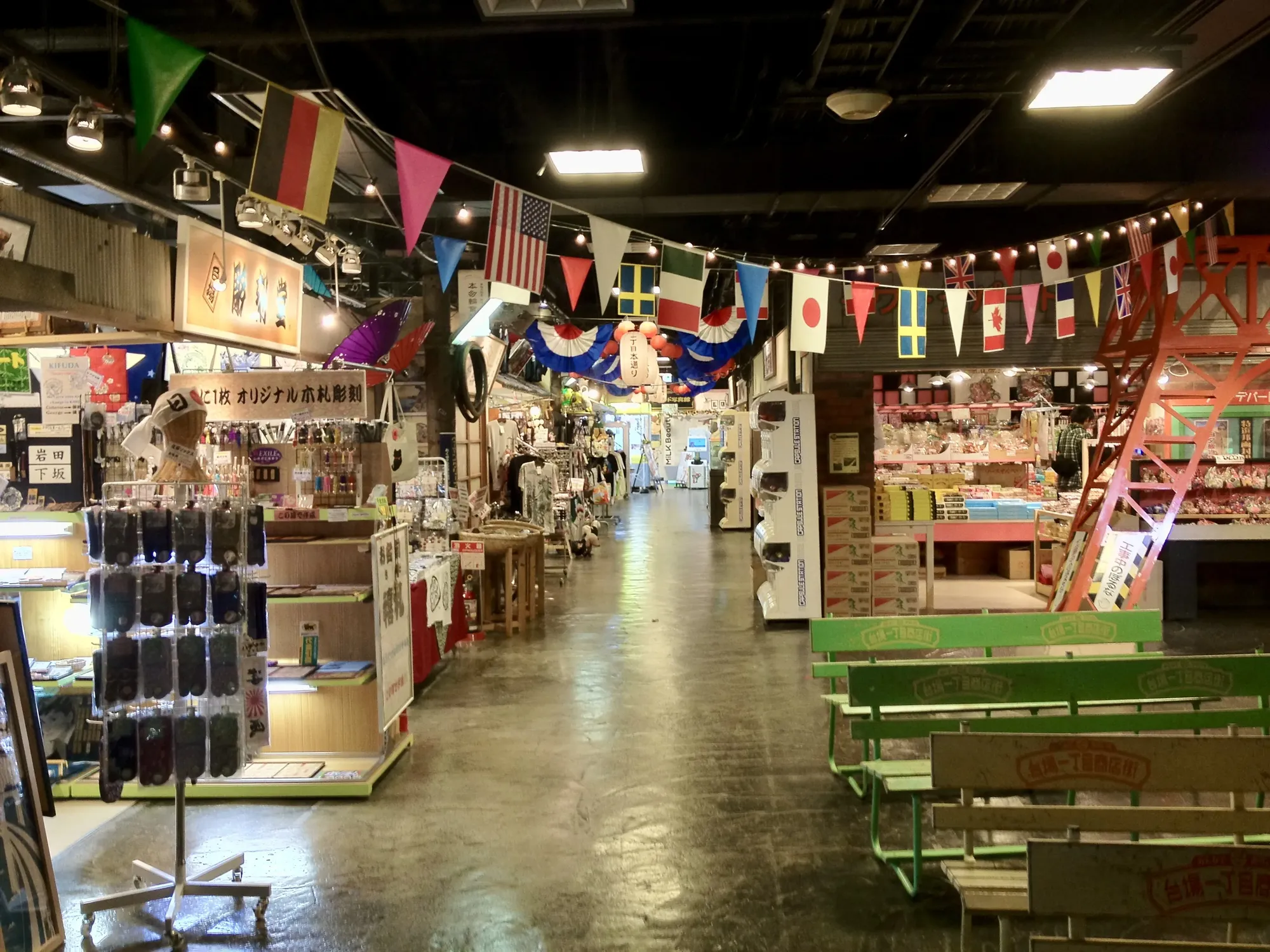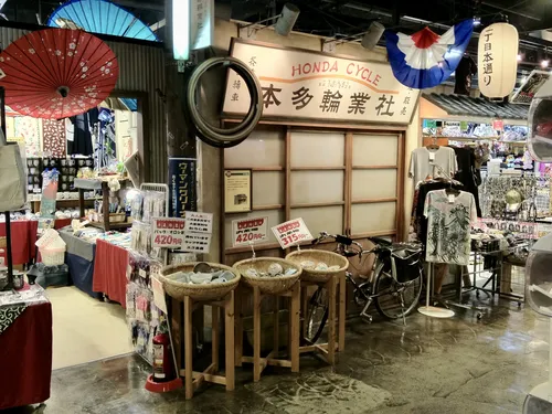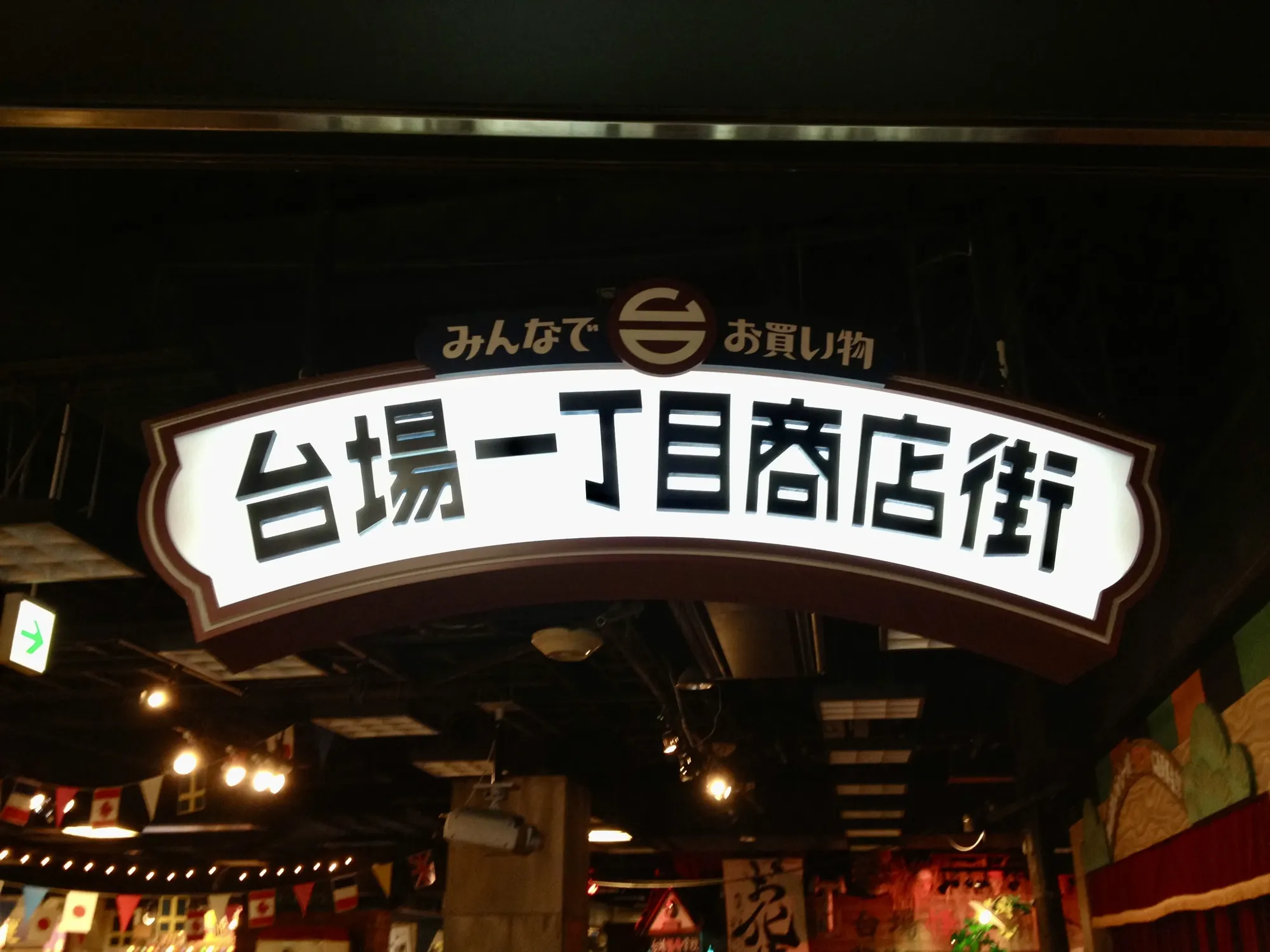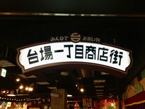 The 台場一丁目商店街 (Daiba Icchome Shotengai, or "shopping street of Daiba's 1st district") is a themed attraction inside the Decks Tokyo Beach shopping mall in Odaiba. It's designed to look like a typical Japanese townscape from the middle of the Showa era (1950s to 1970s). Walking inside feels a bit like traveling back in time.