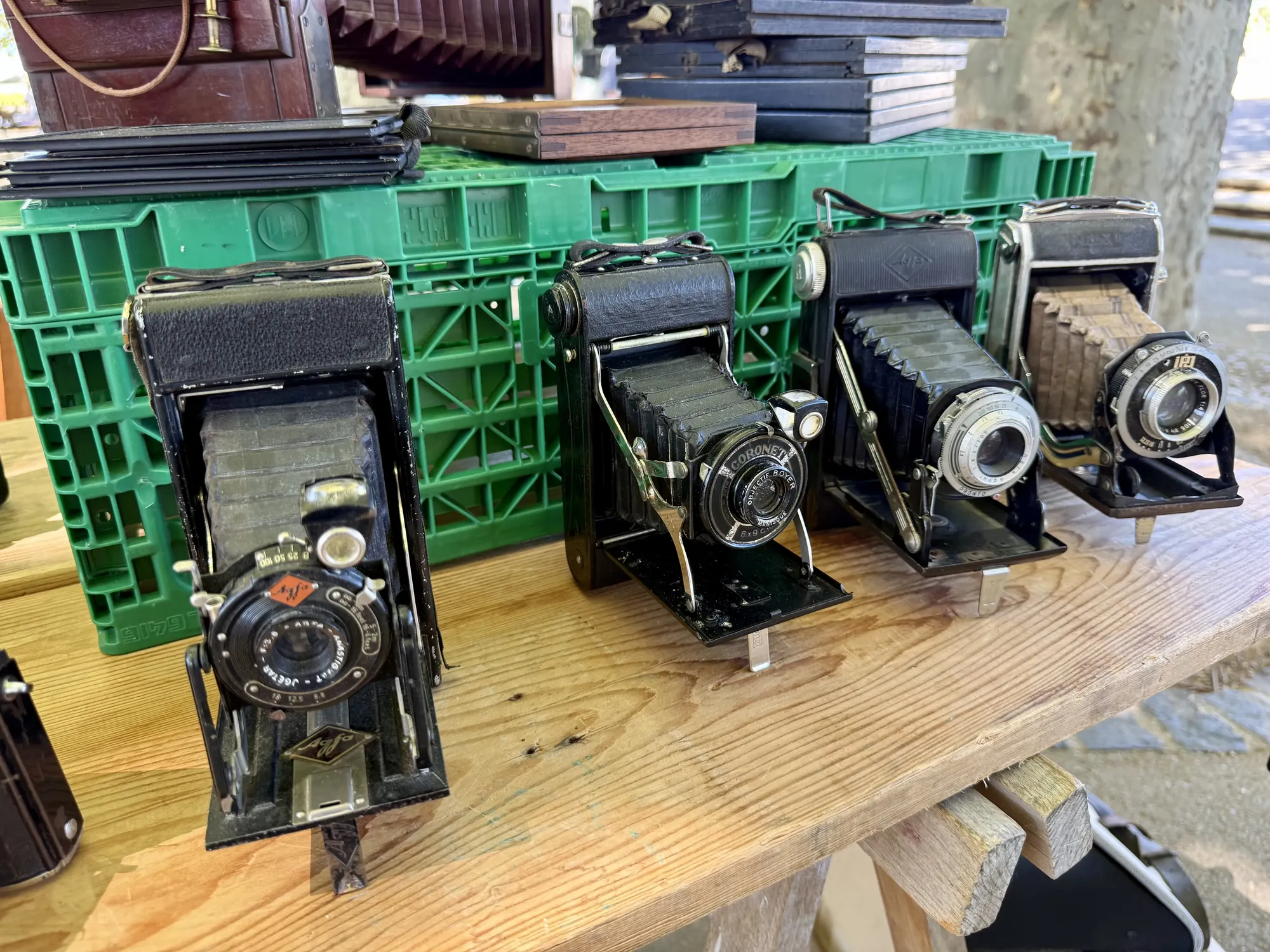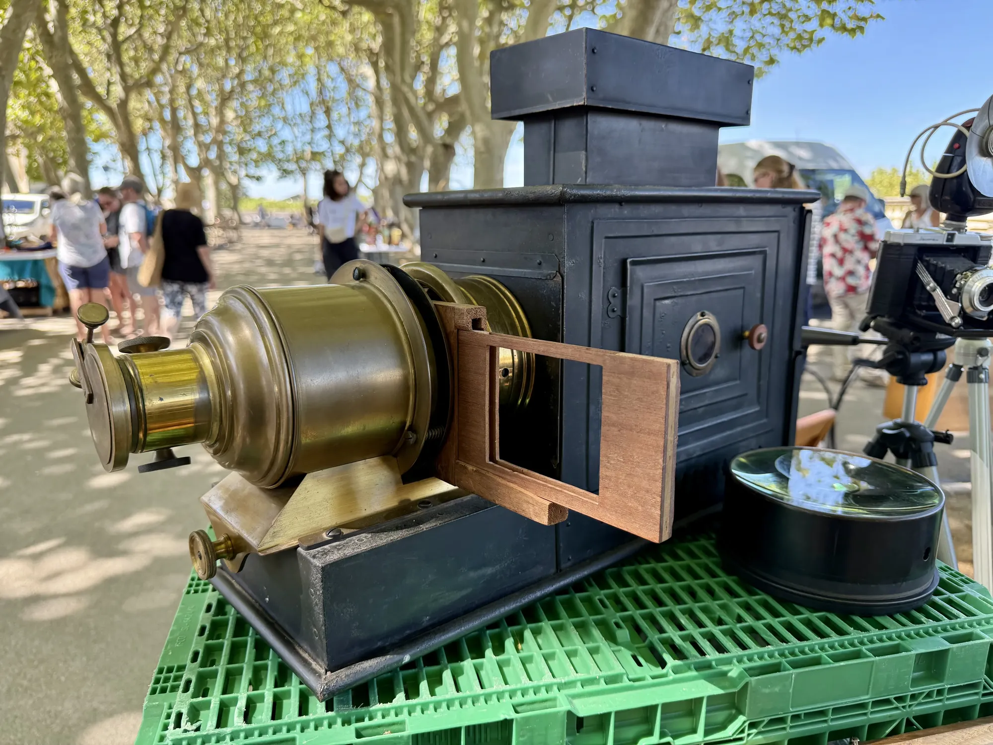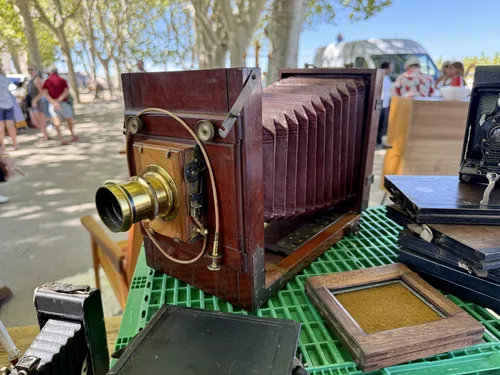 At the end of August 2025 Marie and I spent a weekend in Montpellier and visited the flea market, among a number of other places. There we found this stand that was selling this very cool vintage photography gear, including cameras that were over a hundred years old. If you're interested in this stuff then it's worth paying them a visit if you happen to visit this beautiful city.